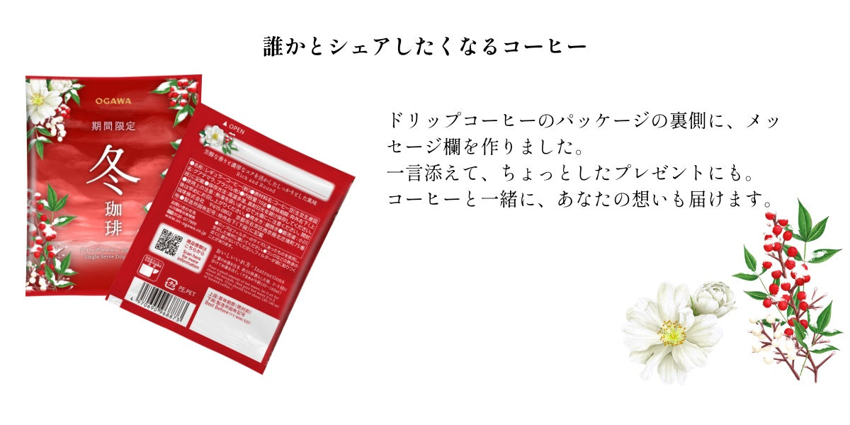 期間限定シリーズは「小川珈琲からお客様へ、季節のお便りをお届けします」をコンセプトに、コーヒー鑑定士が季節をイメージした味わいにコーヒー豆をブレンド。