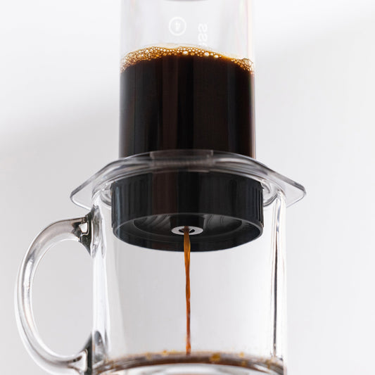 エアロプレスは空気の力を利用した抽出器具。使い方はシンプルで、コーヒーの量、挽き目、湯量調節でさまざまな味わいのコーヒーに。抽出者の創意工夫に応えてくれます。